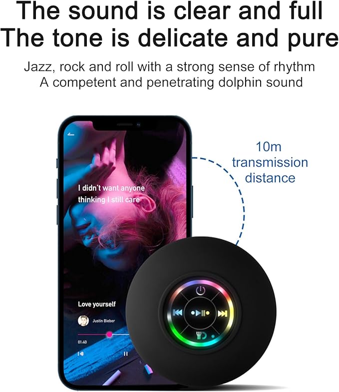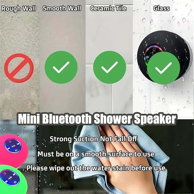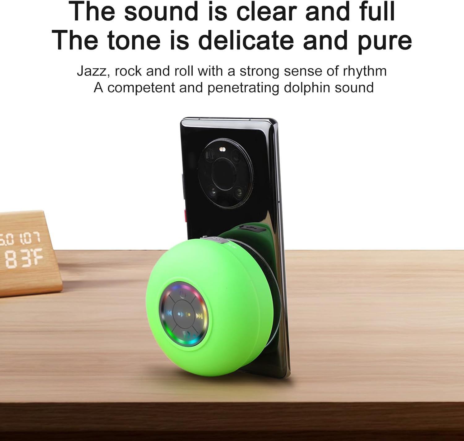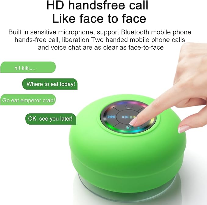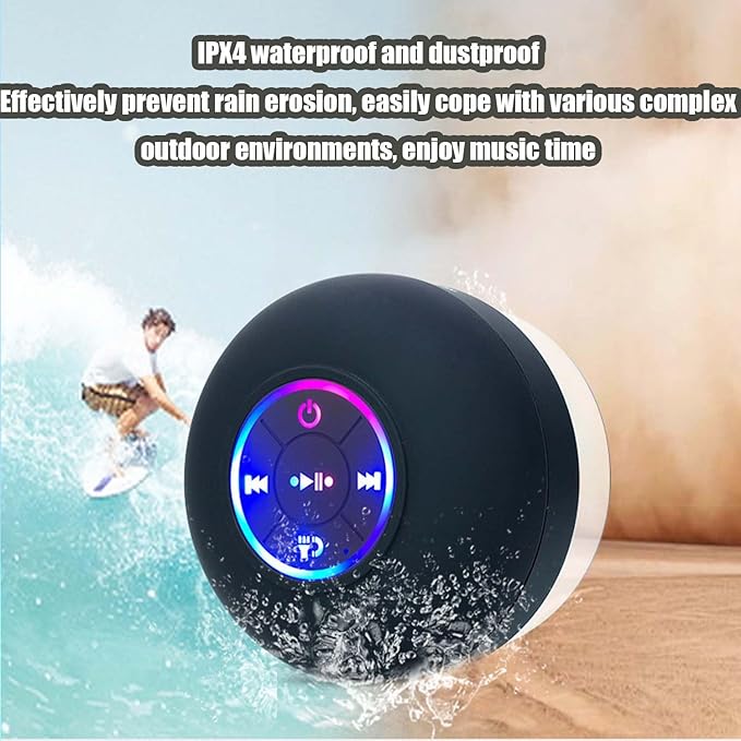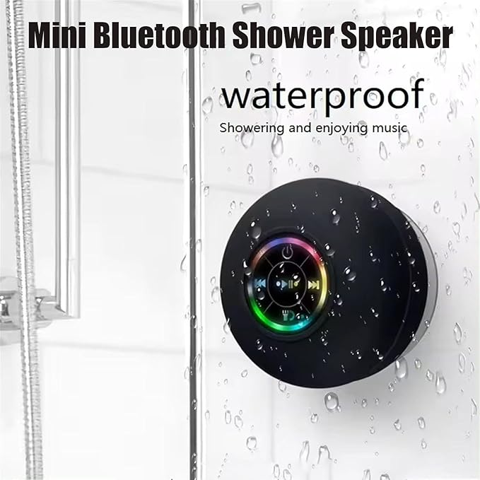 اسپیکر بلوتوثی قابل حمل ضد آب با ابعادی کوچک و کیفیتی مقبول با دارا بودن ساکشنی قوی جهت اتصال به دیوار حمام و استخر ابزاری مناسب جهت سرگرمی و گوش دادن به موزیک در فضاهای عادی و یا با رطوبت بالا می باشد . این دستگاه از طریق بلوتوث به دستگاه هایی همچون موبایل متصل شده و با داشتن میکروفونی قوی شرایط پاسخگویی به تماس های تلفنی را دارا میباشد ، علاوه بر قطع و وصل تماس تلفنی امکان شماره گیری مجدد آخرین تماس را دارد . این اسپیکر با دارا بودن باتری داخلی لیتیومی ۴۰۰ میلی آمپری امکان پخش موزیک به مدت ۶ الی ۷ ساعت را داراست و مدت زمان لازم جهت شارژ باتری آن ۲ الی ۳ ساعت میباشد .  نقاط قوت : * ضد آب و مناسب برای حمام ، استخر ، سونا و ... * قابل حمل  * اتصال بلوتوثی * سبک و کوچک * دارای پد چسبنده به سطوح صاف مانند آیینه ، کاشی ، سرامیک و... *امکان پاسخگویی به تماس های تلفنی ( دارای میکروفن داخلی)