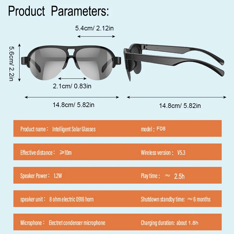 این عینک ها از طراحی گوش باز استفاده میکنند و صدای با کیفیتی دارند که به شما این امکان را میدهد که صدای منتقل شده توسط دستگاه خود را بشنوید و در عین حال صداهای محیط را نیز برای ایمنی خود بشنوید . این عینک ها مجهز به فناوری TWS 5.3 هستند که اتصالی سریع و قابل اعتماد را فراهم میکند و انتقال صدا با کیفیت بالا را ارتقا میدهد. چه در حال پاسخ دادن به تماس باشید، چه در حال دنبال کردن ناوبری GPS یا گوش دادن به موسیقی مورد علاقهتان، این هدفون صدای فوقالعادهای را ارائه میدهد. این عینکهای بلوتوثی با کنترلهای لمسی ، مدیریت تجربه صوتی شما را بدون نیاز به کار با تلفن همراه، تبلت یا دستگاه دیگر آسان میکنند. این عینک آفتابی بلوتوثی مجهز به لنزهای محافظ UV است که به طور موثر نور را فیلتر کرده و از خستگی چشمان شما، به خصوص در حین فعالیتهای خارج از منزل، محافظت میکند. عینک آفتابی بلوتوث سبک و برای استفاده راحت و پایدار طراحی شده است ، این عینک با طراحی ضد آب، در برابر باران مقاوم است و برای استفاده در محیطهای مختلف مناسب می باشد .