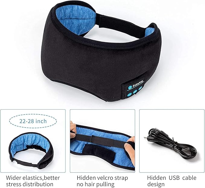 ماسک خواب و هدفون بلوتوث را با هم ترکیب کنید، ماسک چشم هدبند به شما امکان میدهد بدون مسدود کردن نور به موسیقی مورد علاقه خود گوش دهید و محیط مناسبی را برای خوابیدن فراهم کنید.هدفونهای ماسک چشم با طراحی سهبعدی که از مواد فوقالعاده نرم ساخته شدهاند، کاملاً با چشم شما مطابقت دارند و فشار را از روی چشمها برمیدارند. بلندگوهای فوقالعاده نازک برای خوابیدن به پهلو طراحی شدهاند، دیگر هرگز نگران فشار به گوش در هنگام خواب به پهلو نخواهید بود.هدفونهای بلوتوثی خواب با بند راحت که دارای باتری قابل شارژ ۱۳۰ میلیآمپر ساعتی هستند، در عرض ۲ ساعت به طور کامل شارژ میشوند و ۱۴ ساعت زمان پخش برای خواب شبانه شما فراهم میکنند. این چشم بند به شما کمک میکند تا از سر و صدای اطراف محافظت کنید و روی مدیتیشن خود تمرکز کنید، حتی در مکانهای روشن از چرت زدن لذت ببرید و در طول سفر از شارژ کامل بهرهمند شوید.