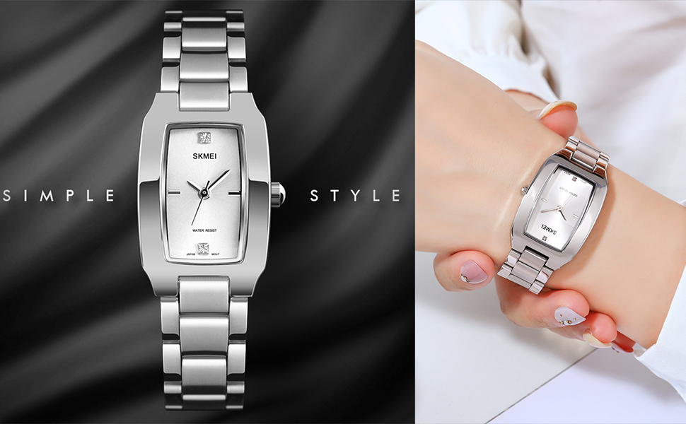 این ساعت مچی عقربه دار SKMEI دارای بند فلزی مقاوم و با کیفیت ، قفل منفصل کلیپسی و فرم مستطیلی ظریف و جذاب با عقربه هایی کلاسیک و خوش رنگ است. قاب مستطیلی ساده و نه یکنواخت است و به راحتی خراشیده نمیشود. مد روز و مناسب برای همه موقعیتها.
