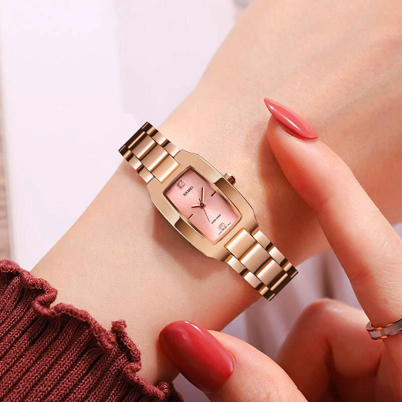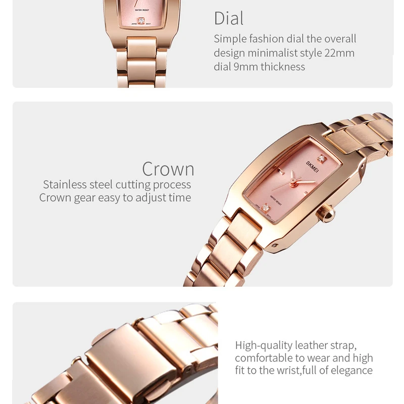 این ساعت مچی عقربه دار SKMEI دارای بند فلزی مقاوم و با کیفیت ، قفل منفصل کلیپسی و فرم مستطیلی ظریف و جذاب با عقربه هایی کلاسیک و خوش رنگ است. قاب مستطیلی ساده و نه یکنواخت است و به راحتی خراشیده نمیشود. مد روز و مناسب برای همه موقعیتها.